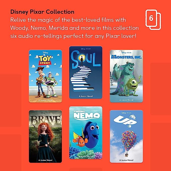 Listeners will love this collection audio of re-tellings of some of Pixar's most beloved films. Over 13 hours of listening to re-live the movie magic with some of your favourite Pixar characters, from Merida to Mike Wazowski, 22 to Carl Fredricksen, and Nemo to Woody.